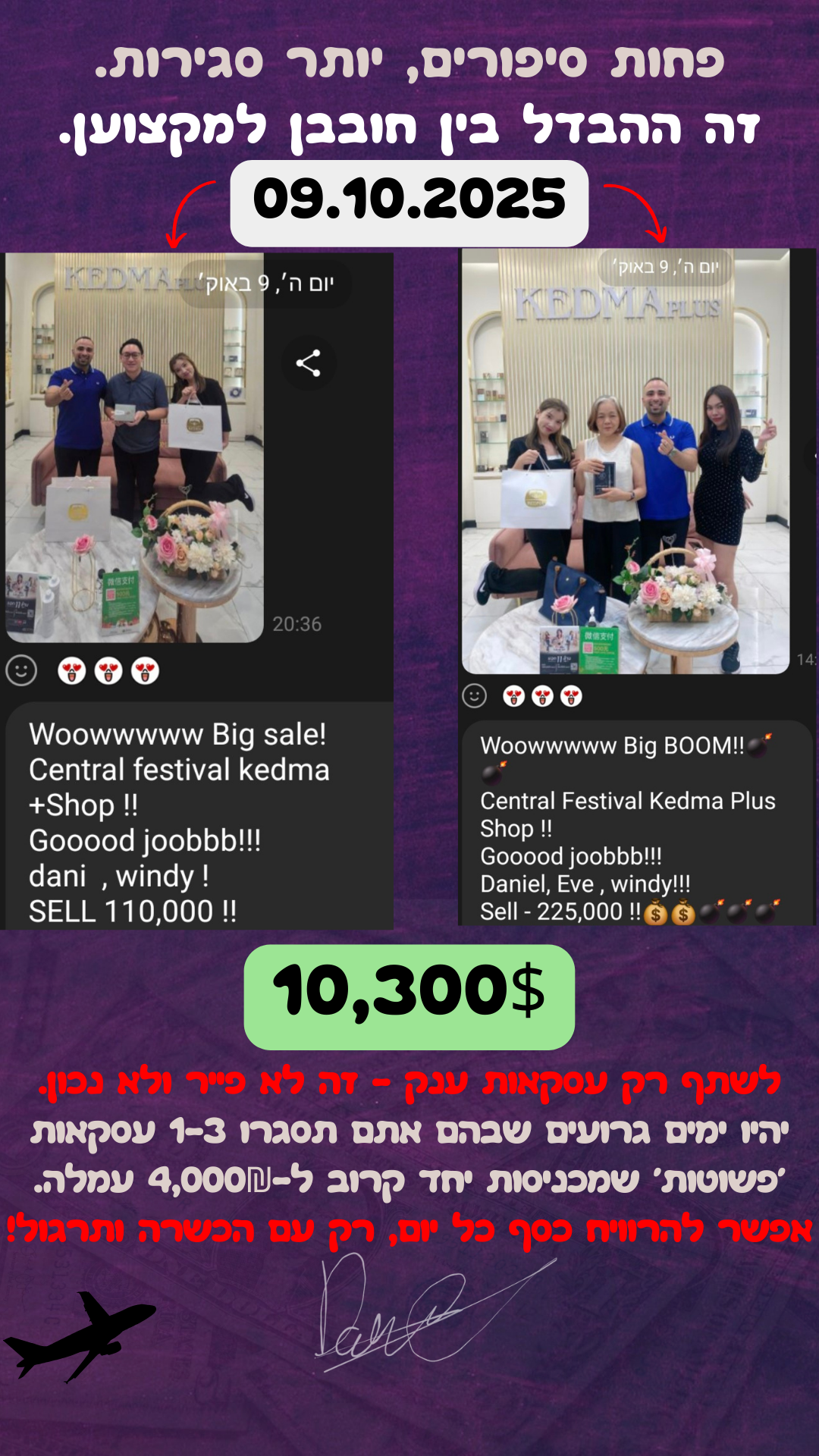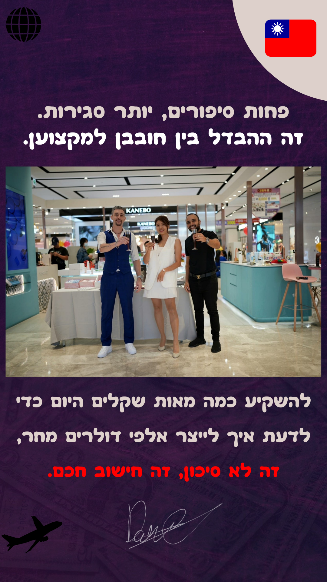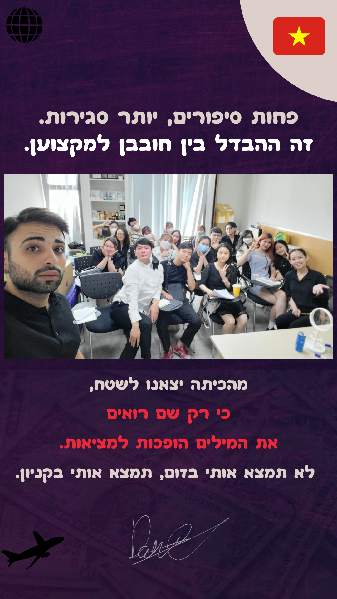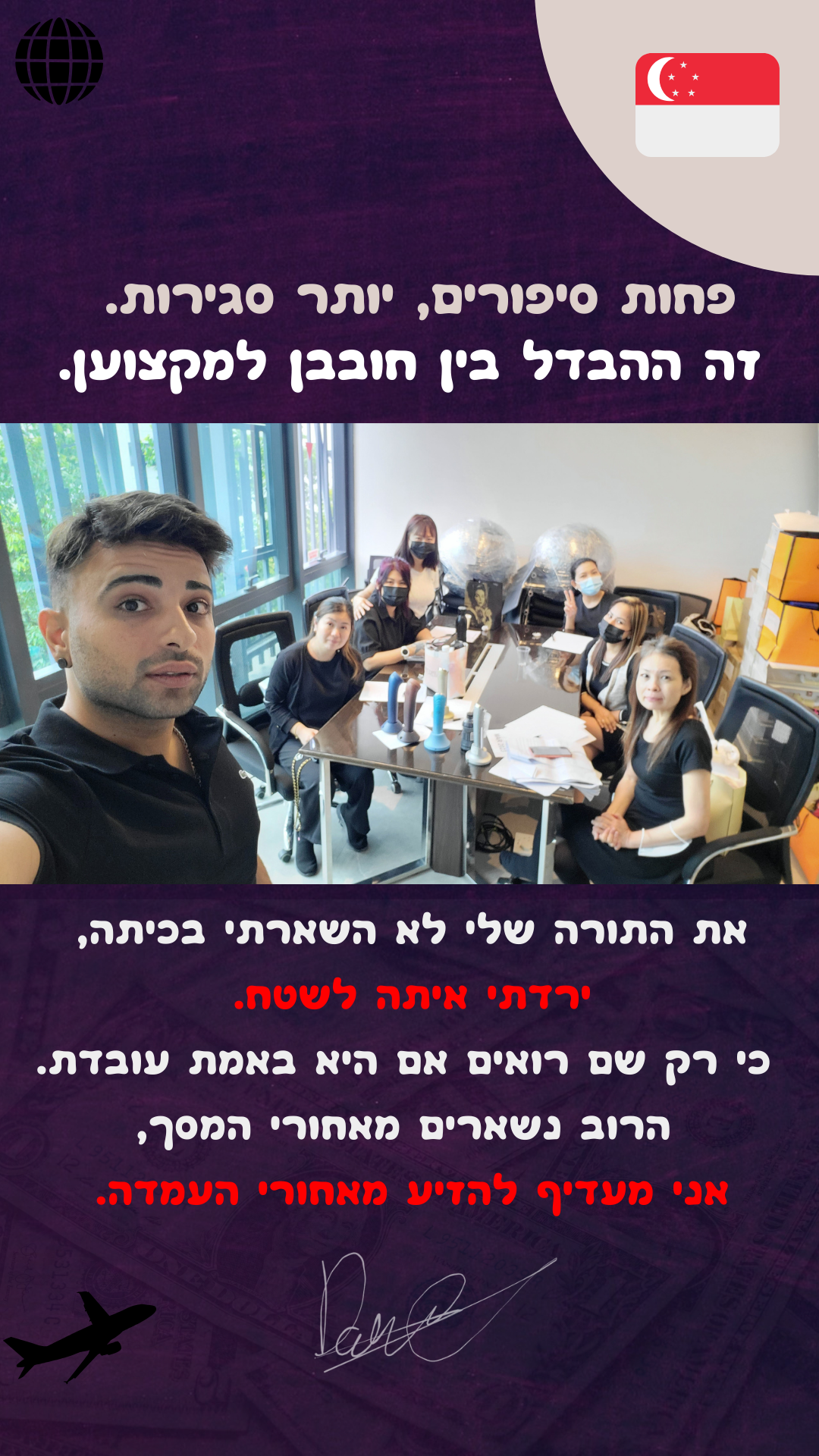 סצנת תאילנד יום אחד, נעליים רטובות, קניון מפוצץ. ביד ימין סגרתי 5,000 דולר, וביד שמאל החזקתי מוכרת שבכתה מפחד. וזה מי שאני: לא רק סוגר עסקאות, אלא גם פותח לבבות.