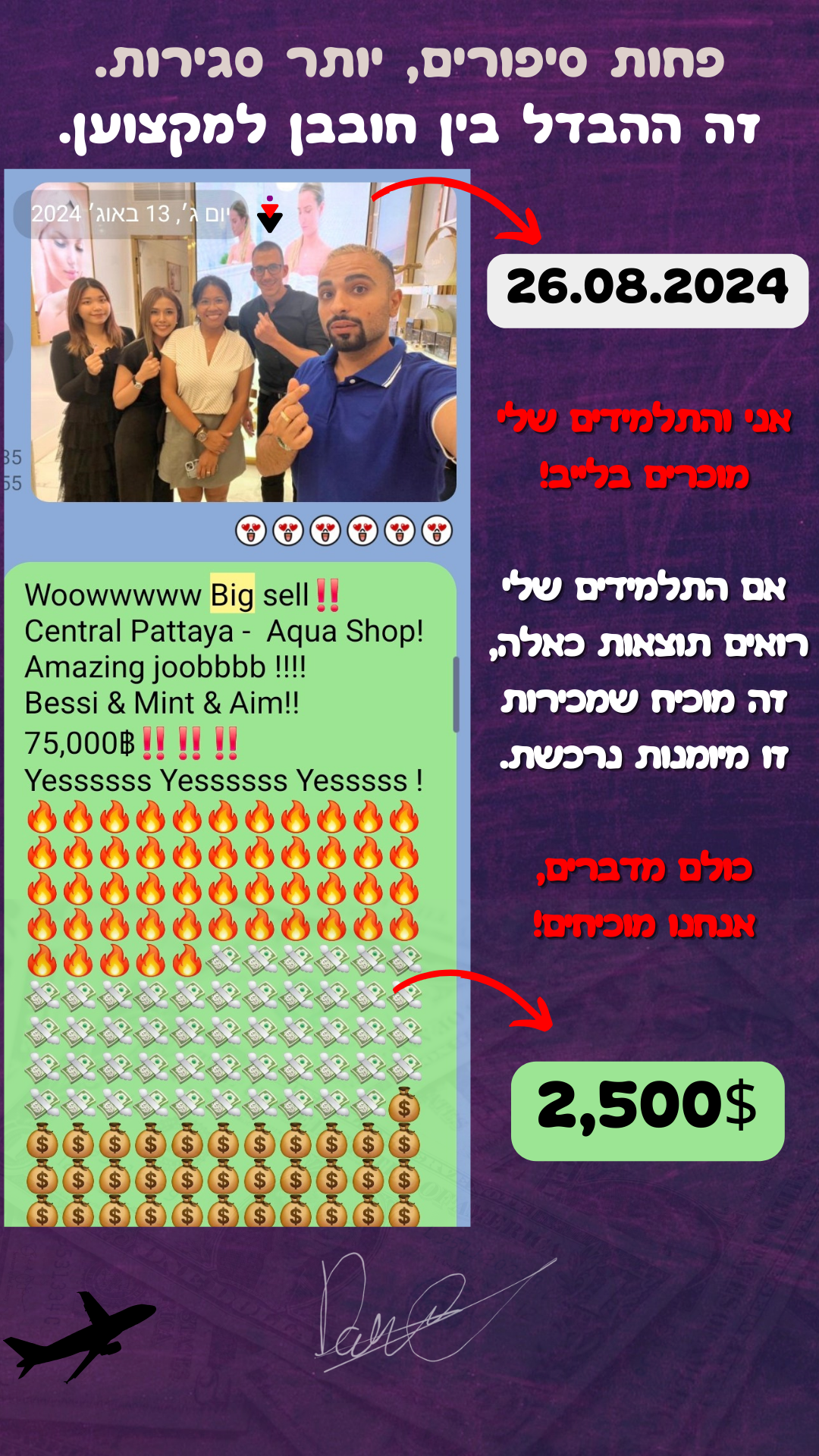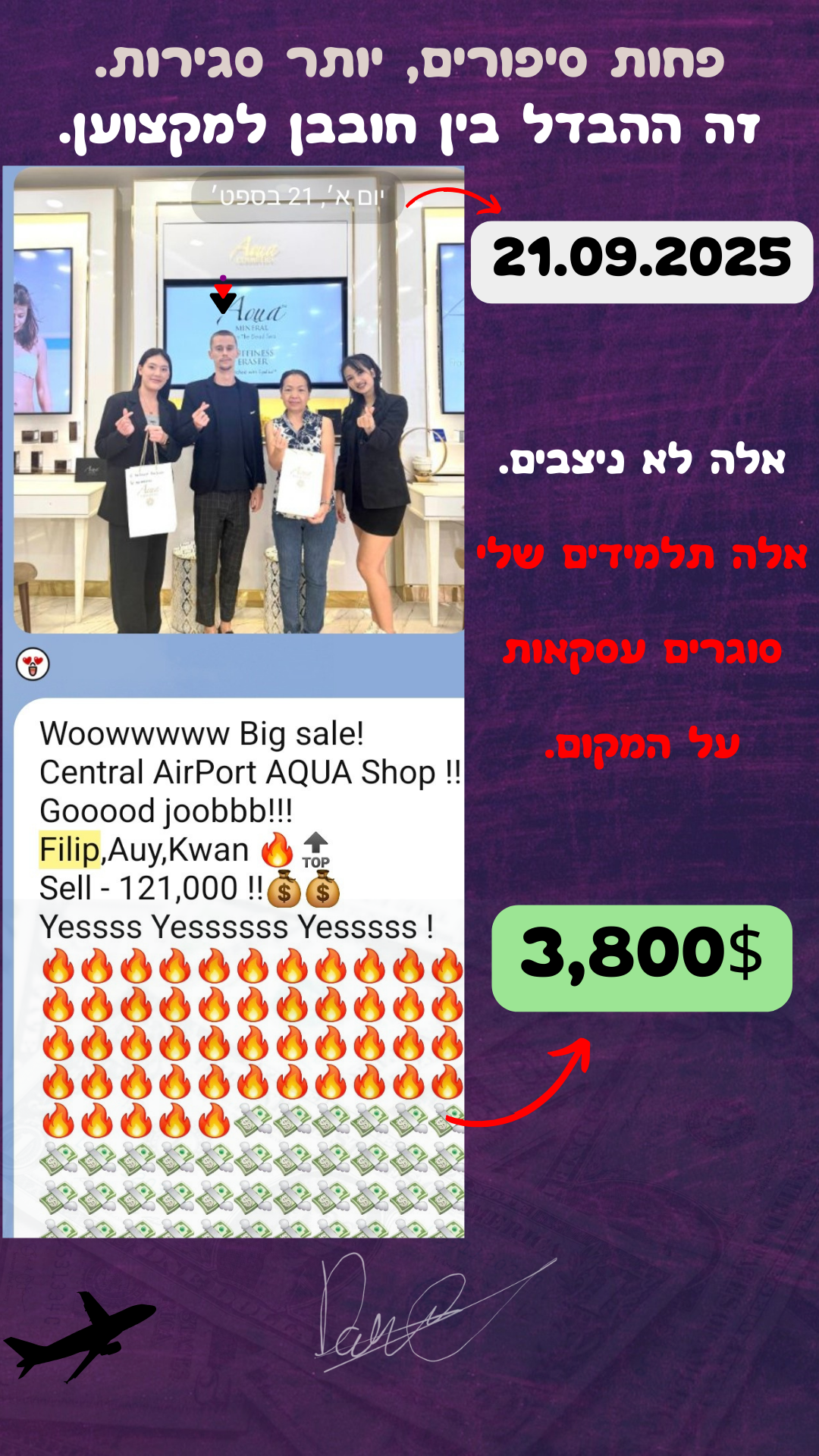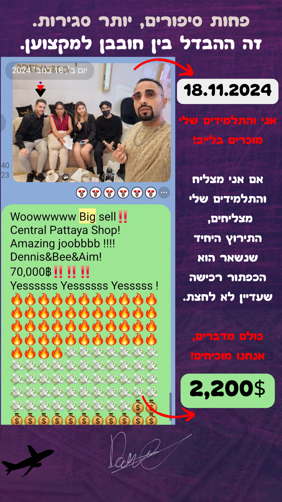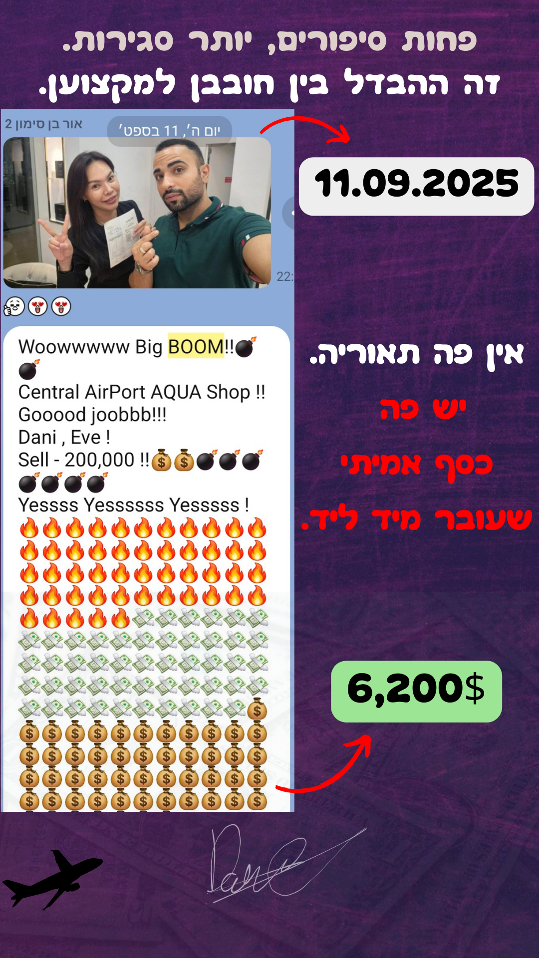 אני לא "מנטור מהאינסטגרם"—אני איש שטח שמלמד מהשרוולים. אני עדיין שם. מוכר, סוגר, מצלם, מתעד. אני מלמד מתוך עשייה, בזמן אמת.