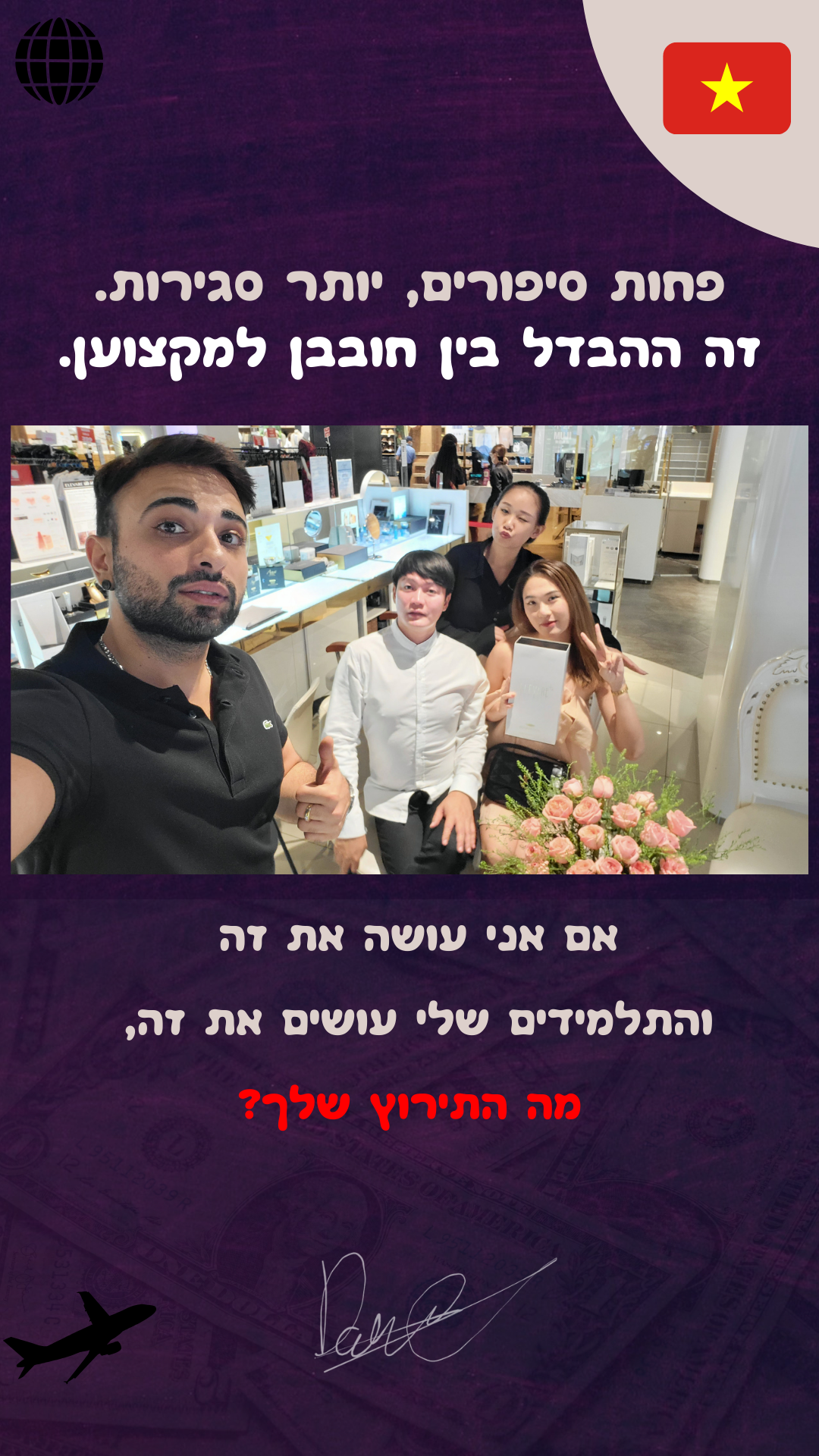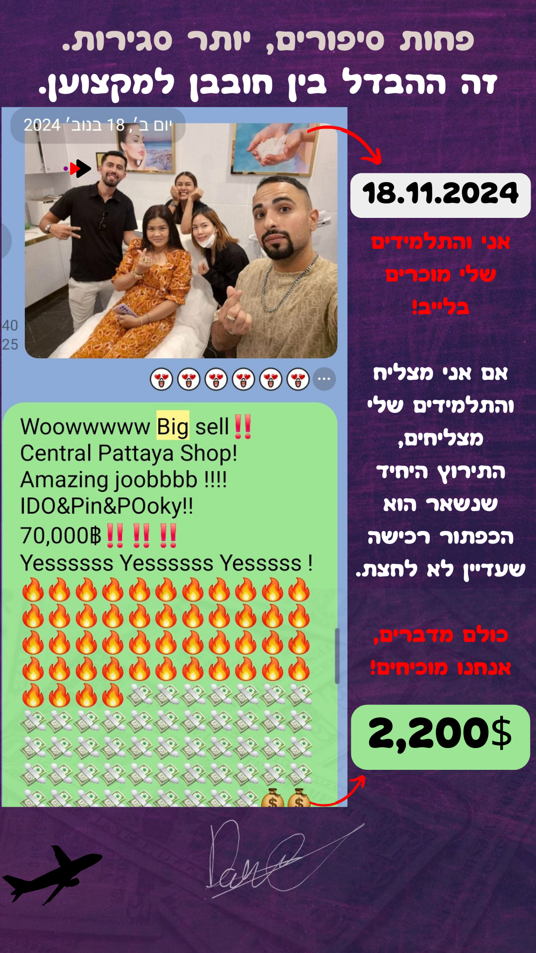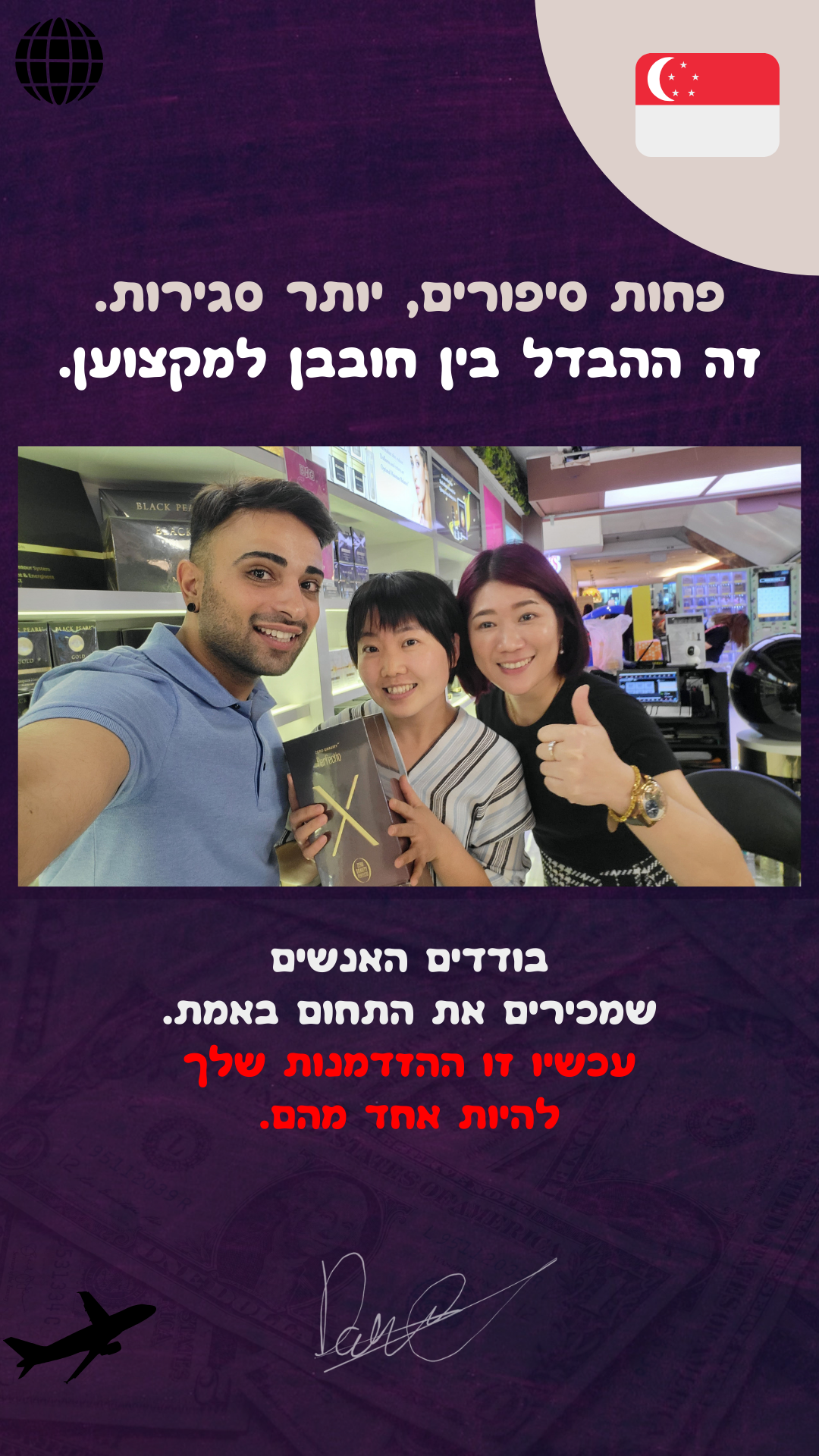 אני לא "מנטור מהאינסטגרם"—אני איש שטח שמלמד מהשרוולים. אני עדיין שם. מוכר, סוגר, מצלם, מתעד. אני מלמד מתוך עשייה, בזמן אמת.