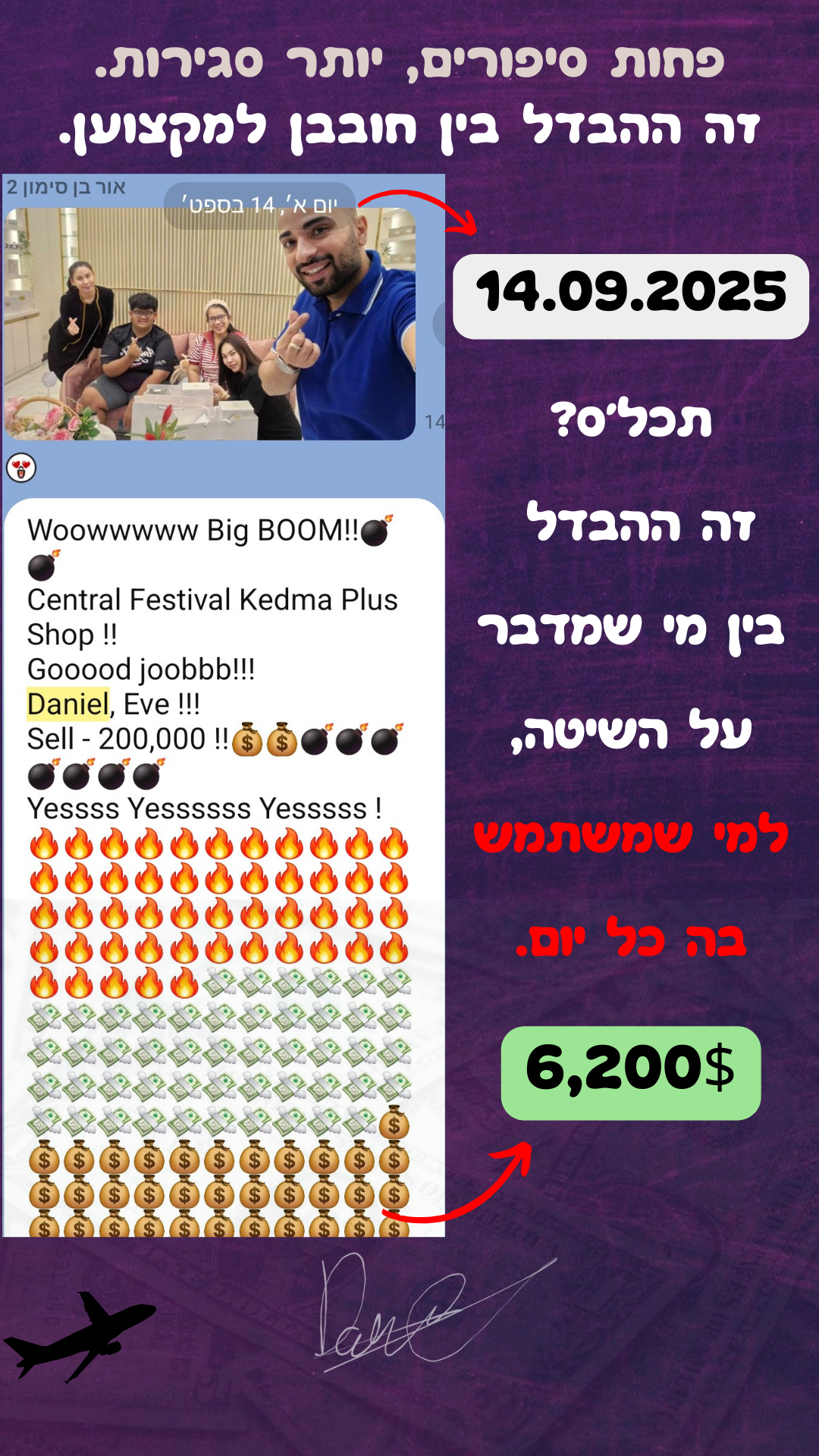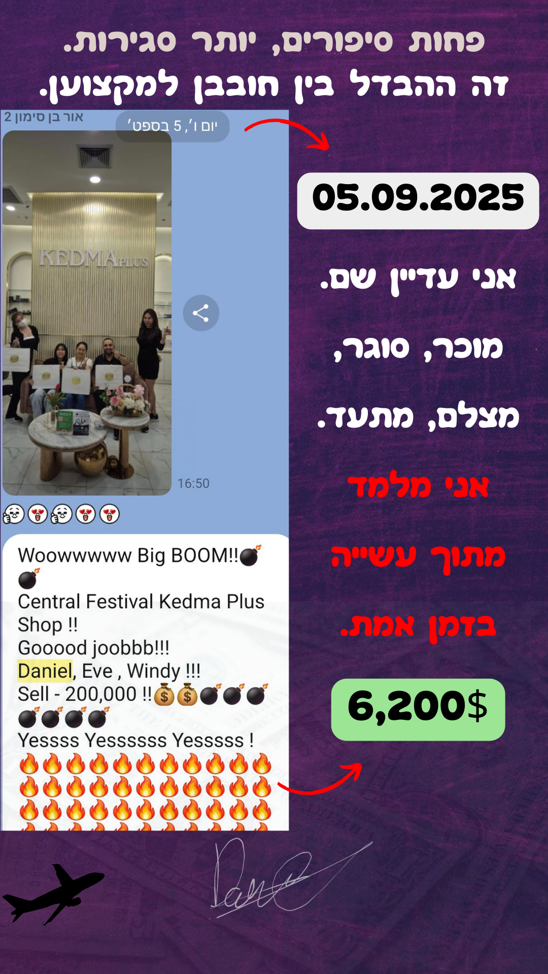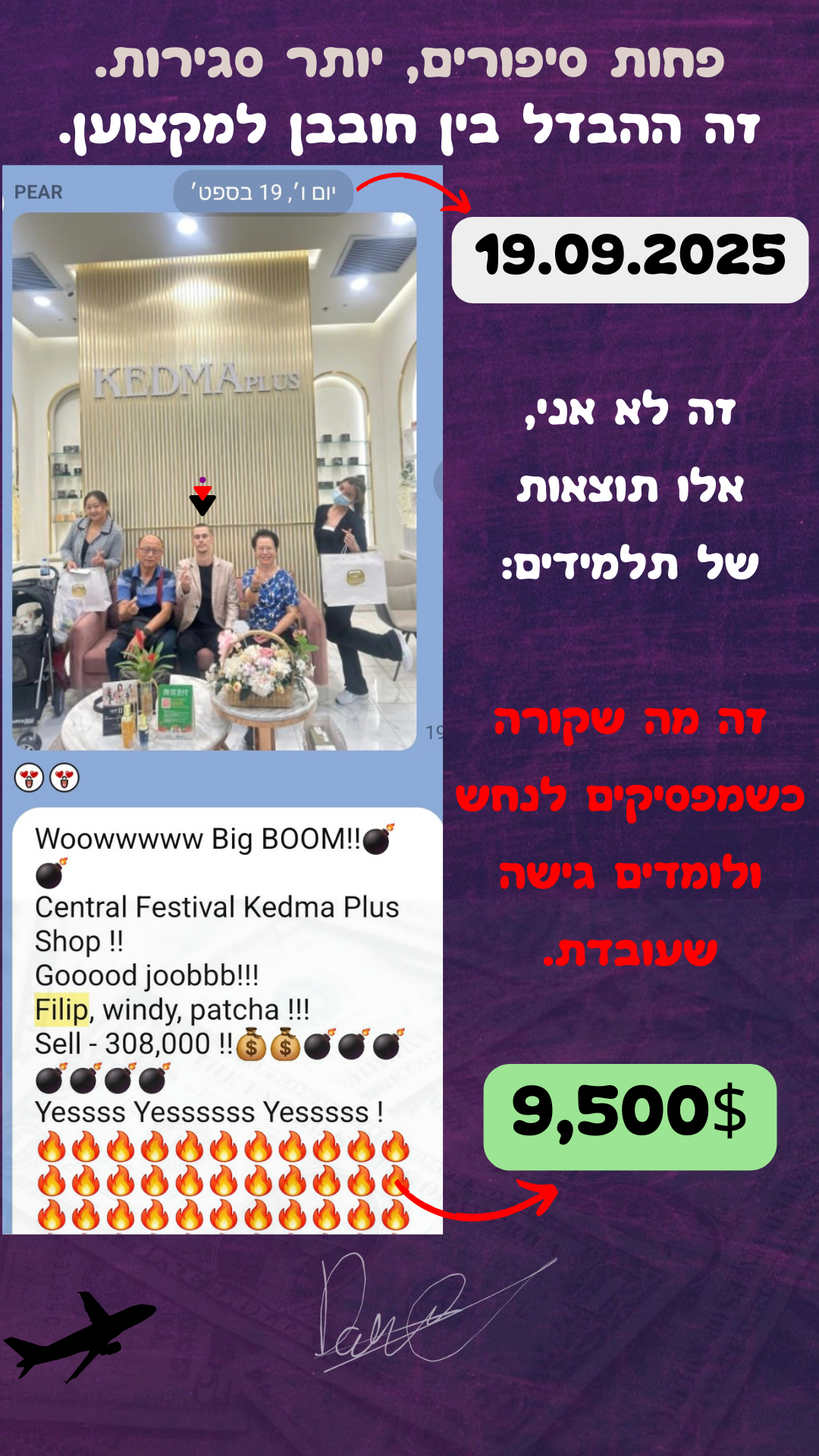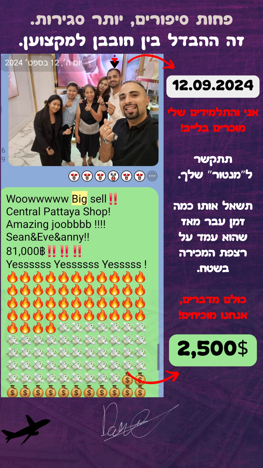 אני לא "מנטור מהאינסטגרם"—אני איש שטח שמלמד מהשרוולים. אני עדיין שם. מוכר, סוגר, מצלם, מתעד. אני מלמד מתוך עשייה, בזמן אמת.