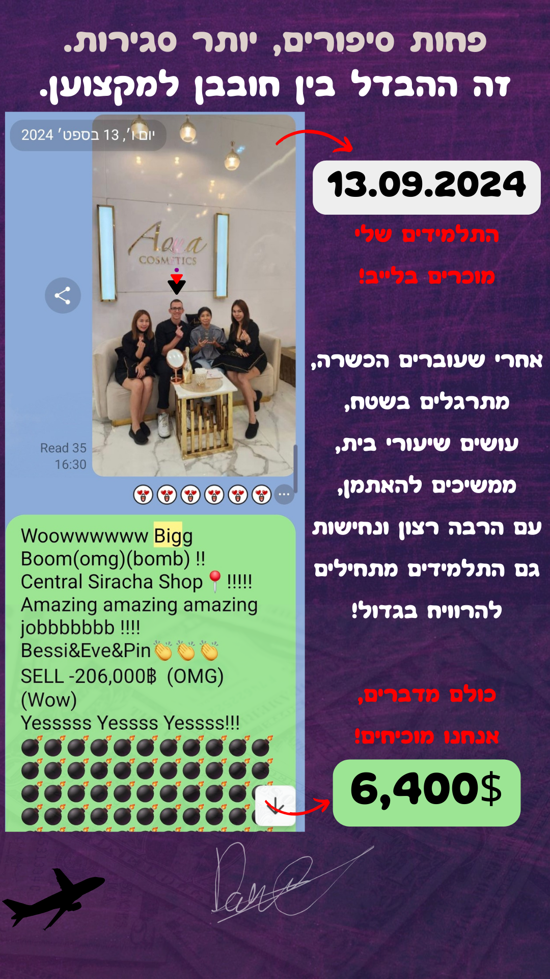 הגיע הזמן לראות את התוצאות האמיתיות שאתה יכול להשיג. תגללו ותראו בעצמכם: תלמידים שהגיעו בלי ניסיון – והיום סוגרים אלפי דולרים!