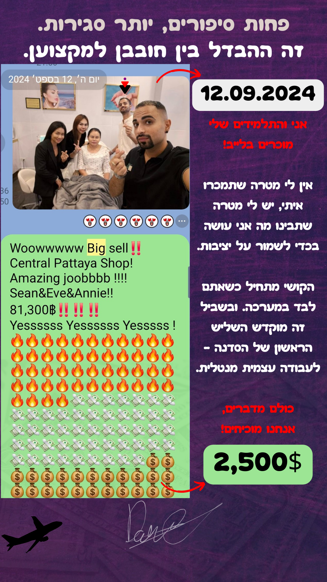 המטרה: להפוך אותך ללוחם רגשי מנטלי. מי שמצליח לסגור עסקה גם ביום הכי קשה שלו.