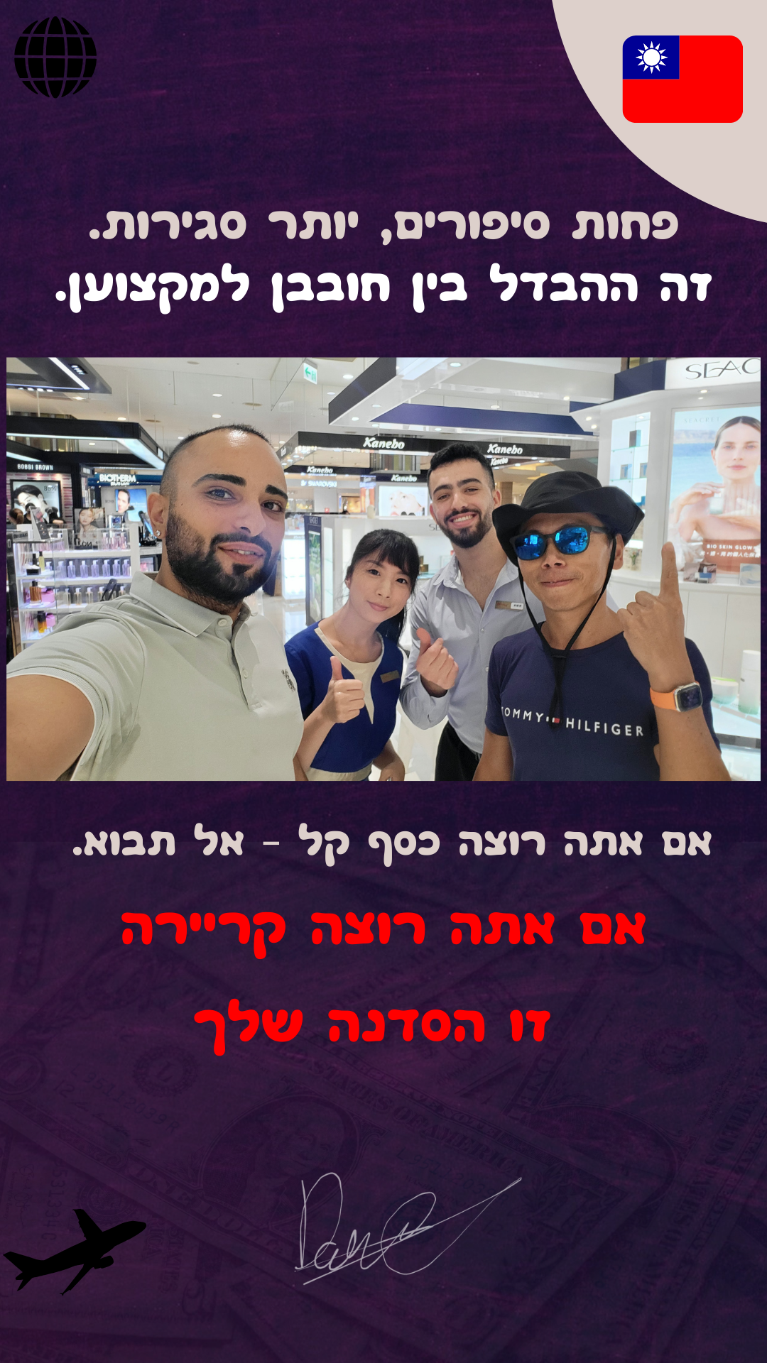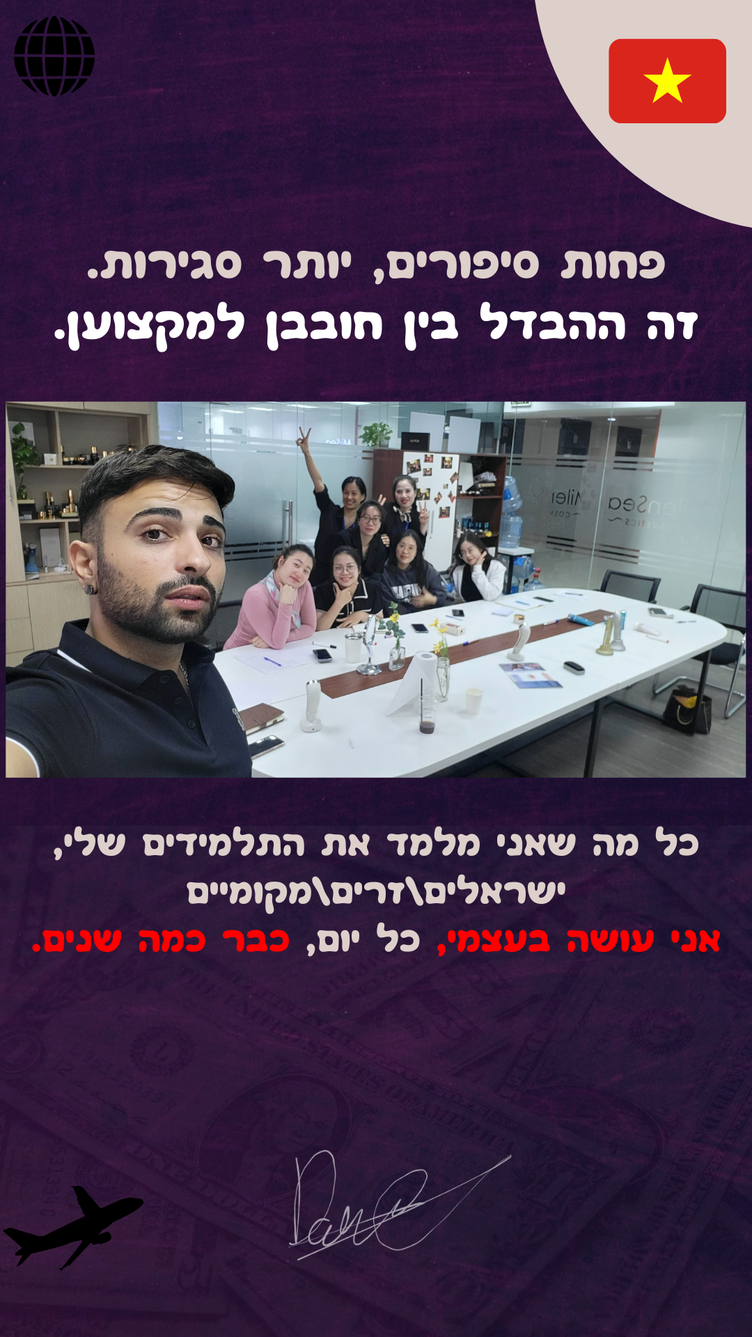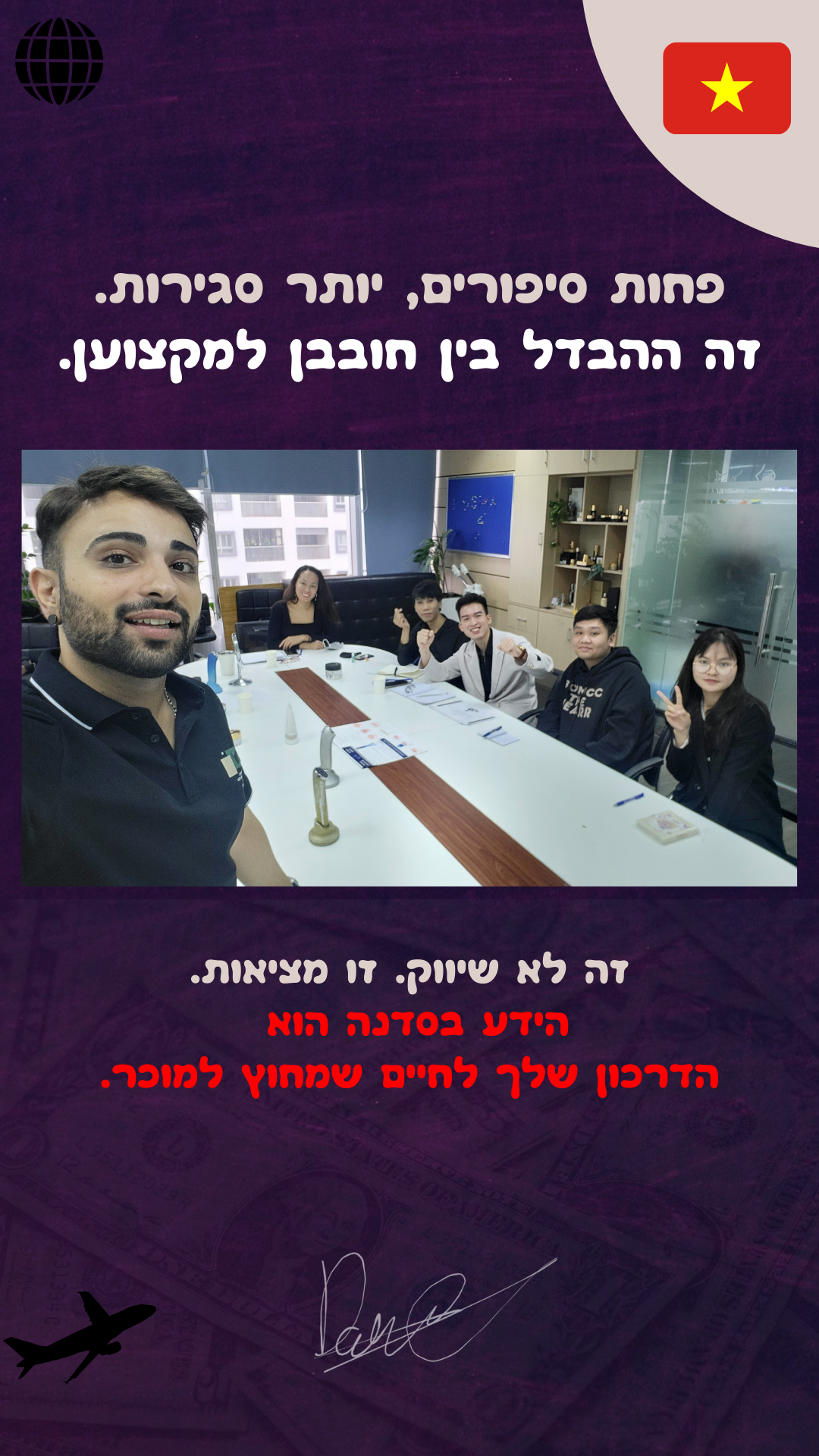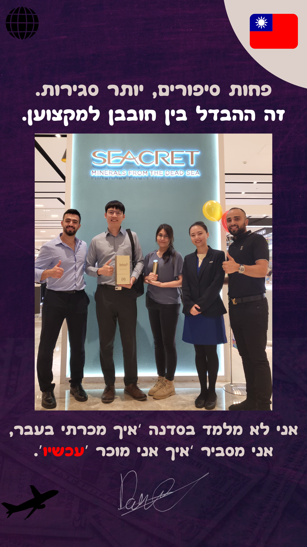 המטרה: לבנות קריירה. להפסיק להיות "מוכר בעגלות" ולהתחיל להיות יועץ טיפוח בינלאומי עם עתיד ביד.