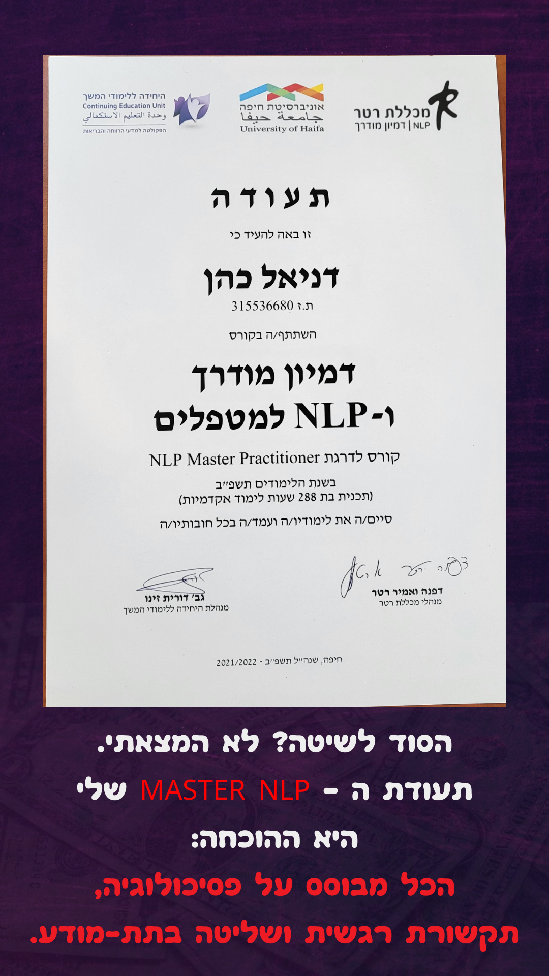 אני רוצה להצטרף עכשיו במחיר מיוחדאם לא החזרת את ההשקעה בתוך 45 יום מסיום הסדנה אני נכנס איתך לליווי אישי בזום