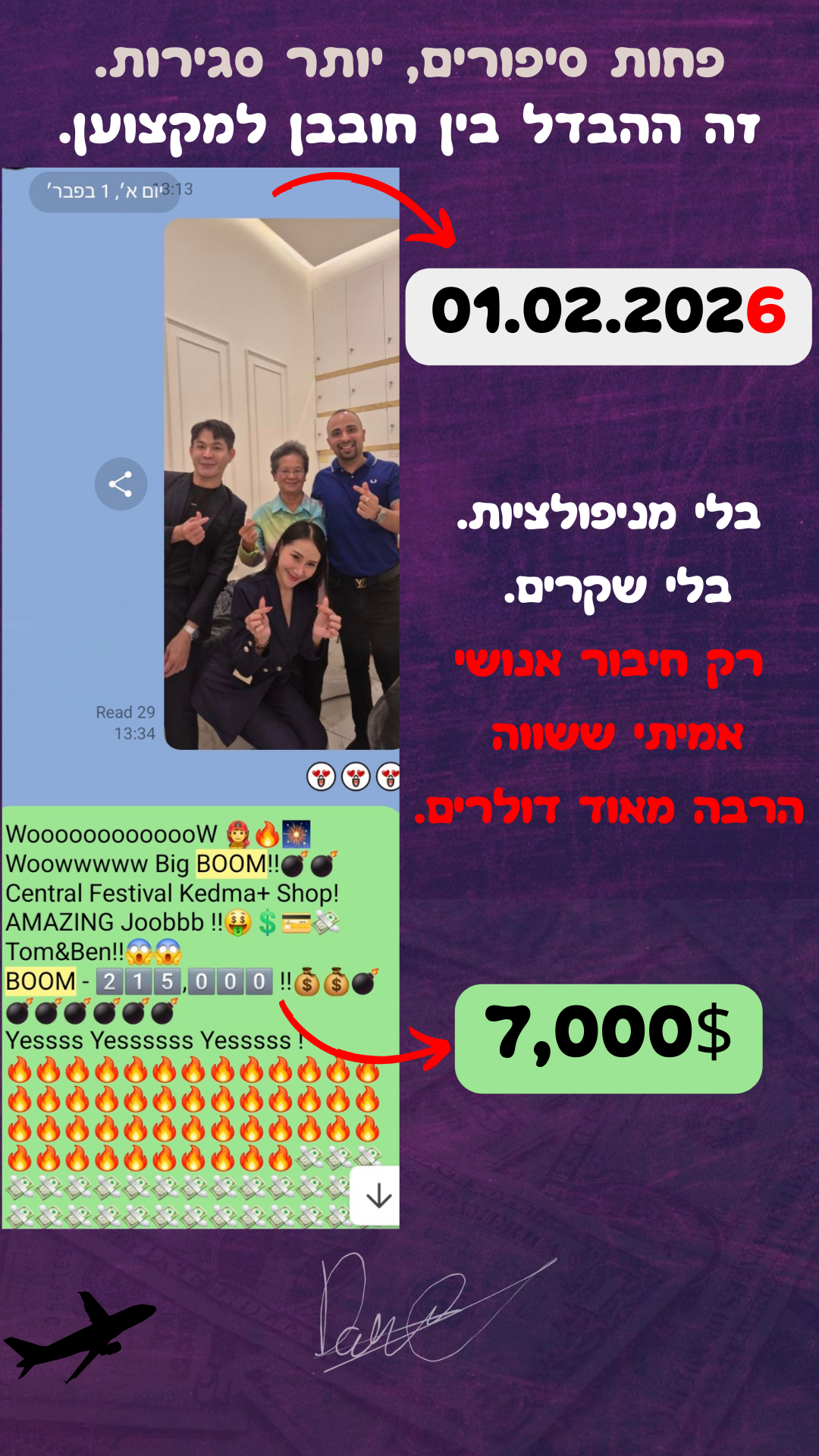 ואם אתם פה, כנראה שאתם כבר מבינים שזה לא רק הכסף. זה הביטחון. זה העתיד. זה החופש. זה הרגע שאתם מפסיקים להיות “אולי”, והופכים להיות האדם שאשכרה סומכים עליו.