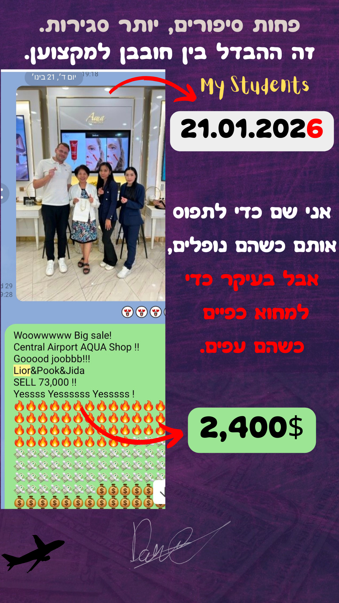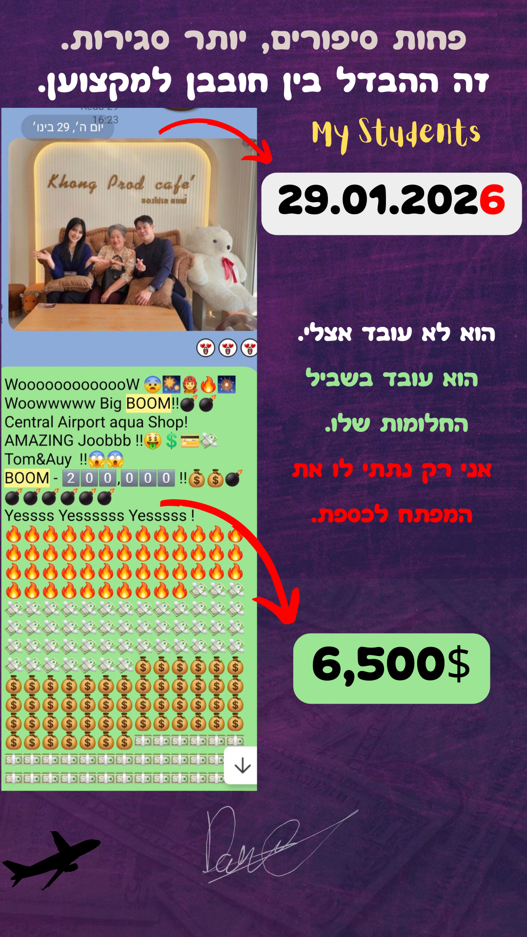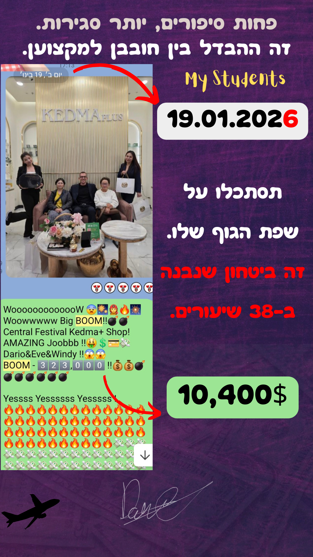תכינו את המוח ואת האנרגיות. אני לא כאן כדי "לנסות", אני כאן כדי לבנות לכם מקצוע בינלאומי וקריירה שבאמת שווה לחיות בשבילה.