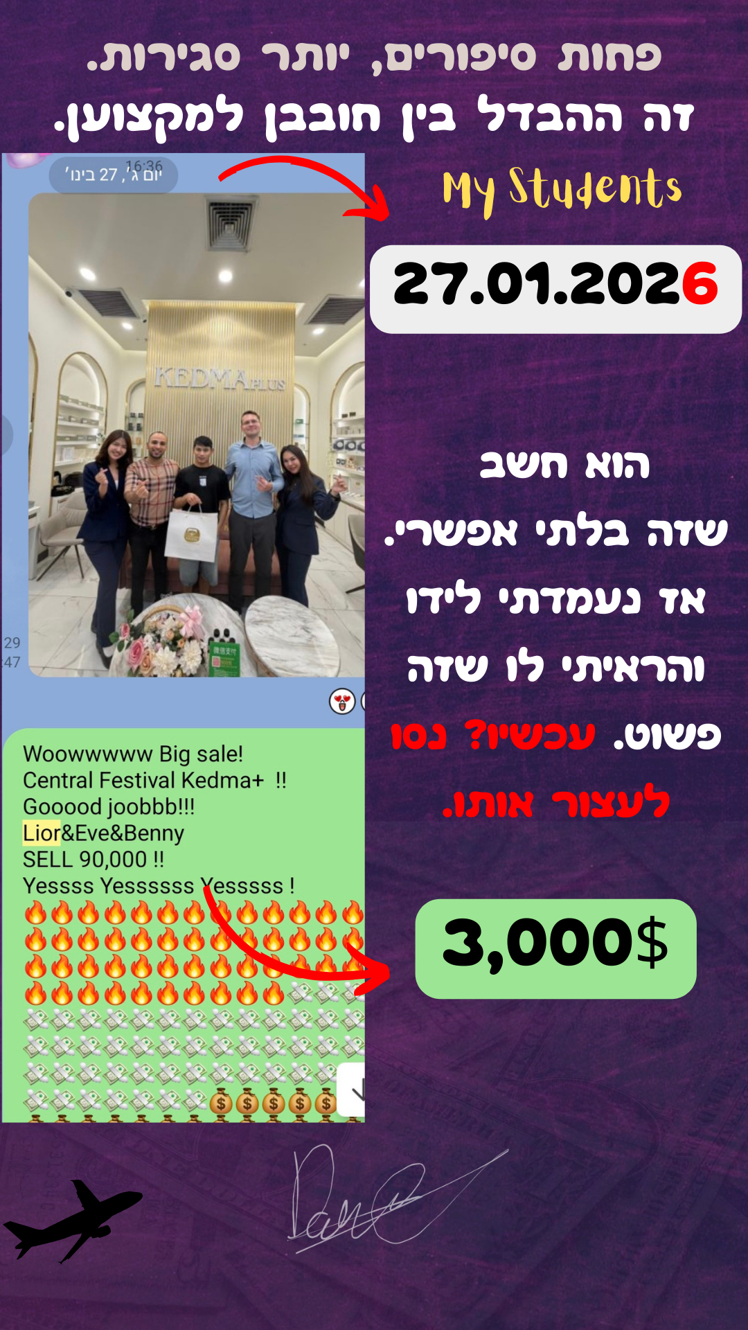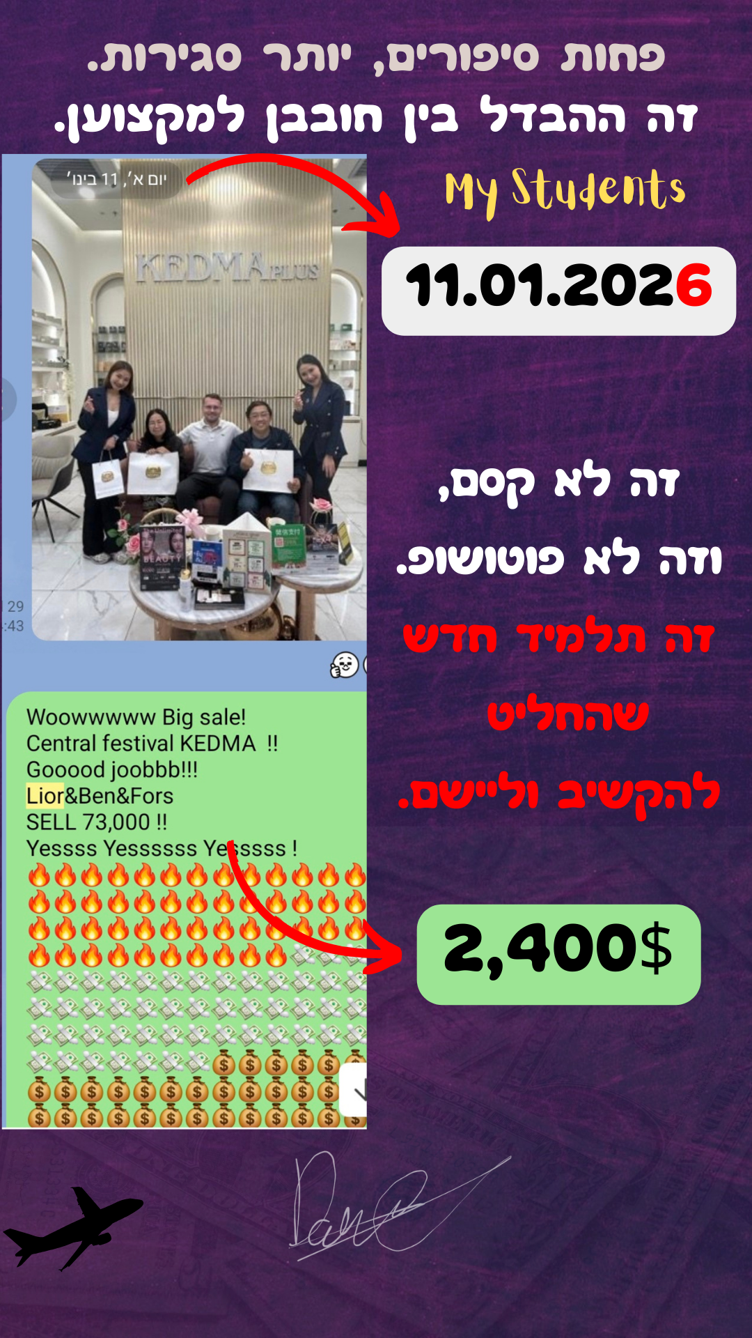 אני לא מלמד אתכם רק תיאוריות, אני מביא לכם את מה שסוגר עסקאות עכשיו, מול הלקוחות הכי קשוחים בעולם.